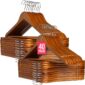 COM-FORT HOUSE - Pack de 40 Perchas de Madera Maciza Nogal con Gancho Giratorio 360° y Muescas Antideslizantes - con Barra para Pantalones - Alta Resistencia