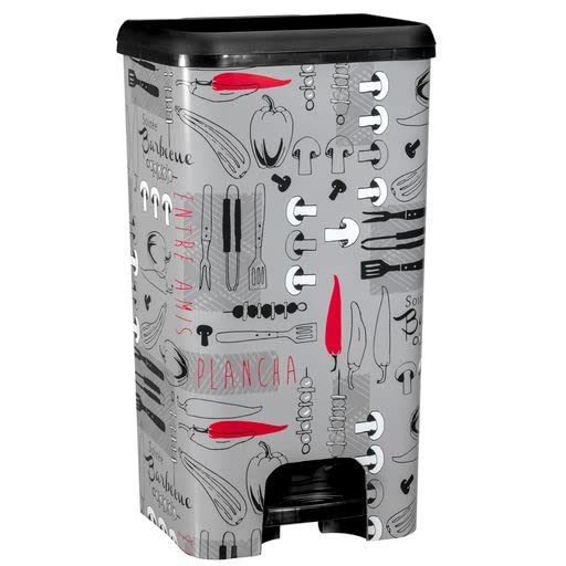COM-FORT HOUSE | Cubo de Basura con Pedal | Capacidad de 52 litros | Cubo Reciclaje | Decoración Vegetales | Cubo de Basura Orgánico Cocina | 1 unidad | Piezas Extraíbles | Limpieza Fácil |