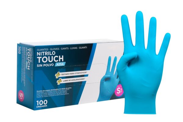 COM-FORT HOUSE – Guantes nitrilo desechables – Color Azul- Colección Touch – Guantes de Látex sin Polvo – Disponible en tallas XS, 100 und
