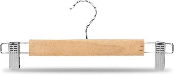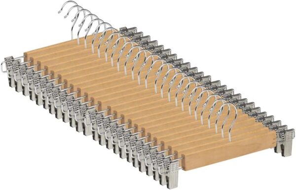 COM-FORT HOUSE Percha Madera Maciza para Faldas, Pantalones y Vaqueros, Color Natural con Clips Ajustables Anticorrosión y Gancho Giratorio (24, Natural)