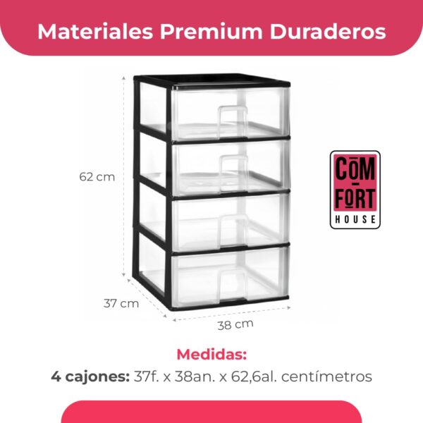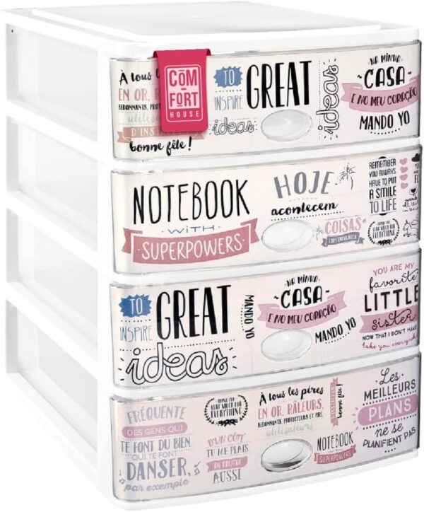 Cajonera Apilable de Plástico | Modelo Multicolor | Color Blanco | Modelo de 4 Cajones | Cajones de Almacenamiento Modular