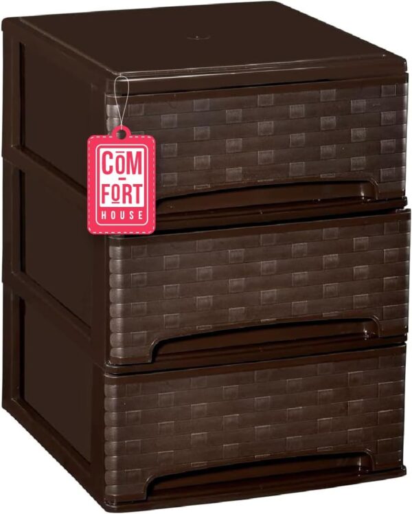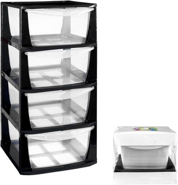 COM-FORT HOUSE | Cajonera Apilable de Plástico | Modelo Transparente | Color Blanco | Modelo de 3 Cajones | Cajones de Almacenamiento Modular