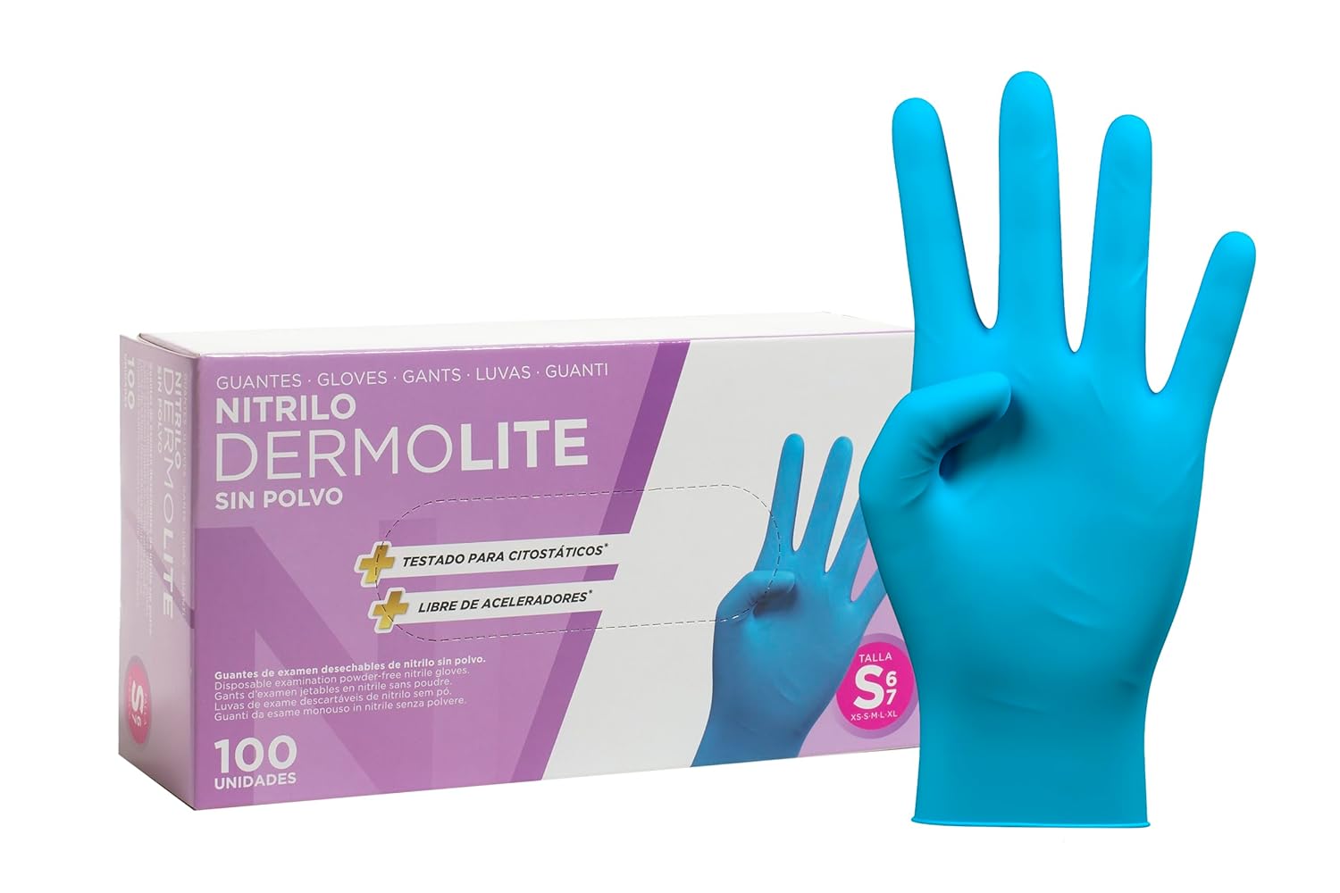 COM-FORT HOUSE – Guantes nitrilo desechables – Color Azul- Colección Dermolite – Guantes de Látex sin Polvo – Disponible en tallas S, 100und