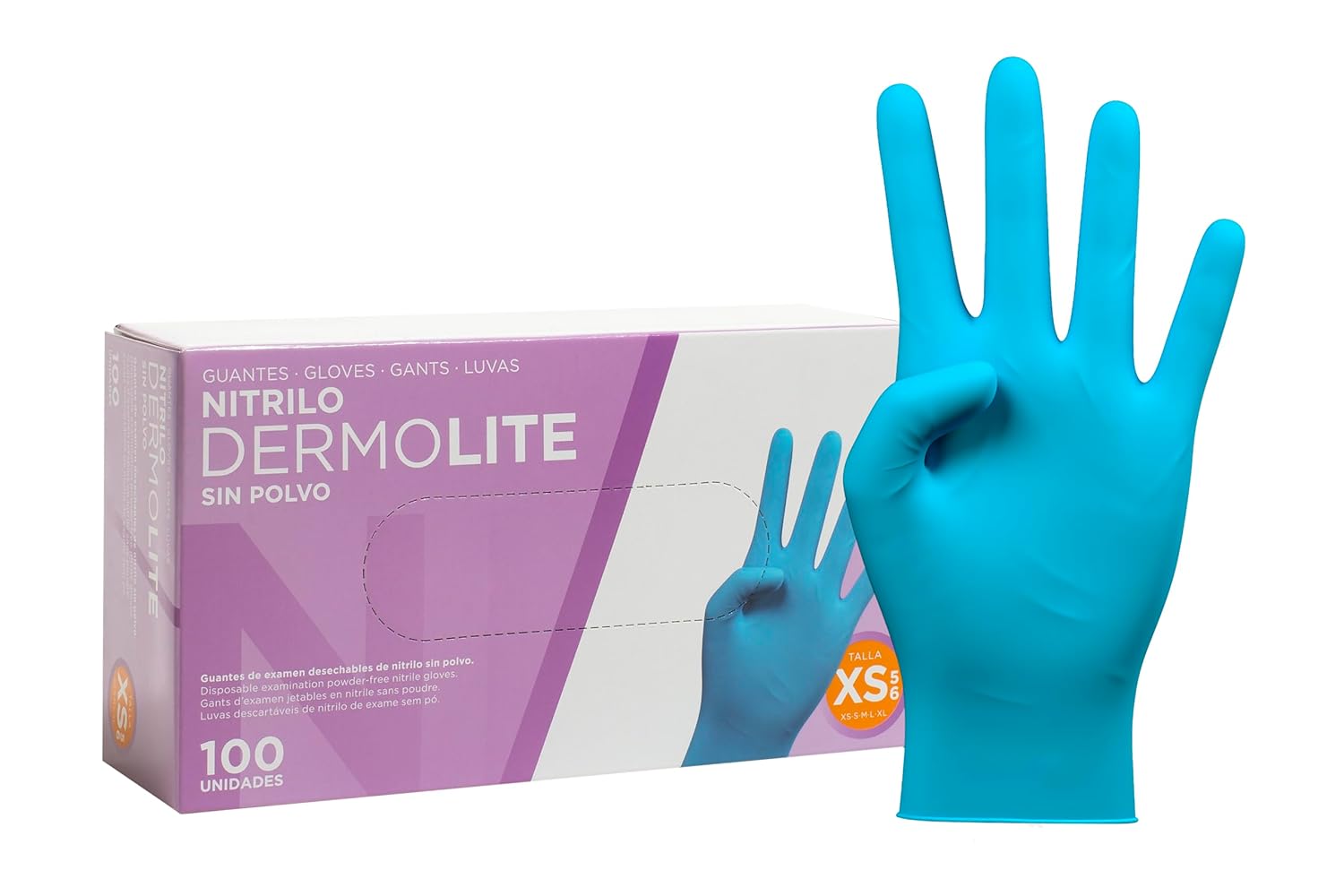 Guantes nitrilo desechables – Color Azul- Colección Dermolite Guantes de Látex sin Polvo – Disponible en tallas XS, S, M, L