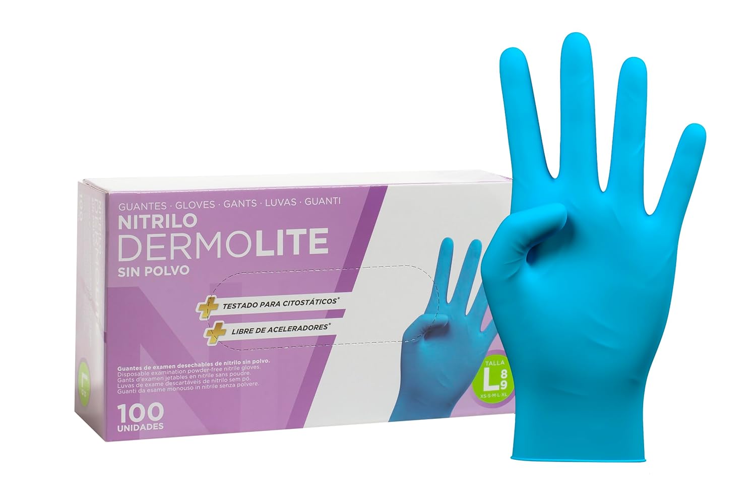 COM-FORT HOUSE – Guantes nitrilo desechables – Color Azul- Colección Dermolite – Guantes de Látex sin Polvo – Disponible en tallas XS, 100und