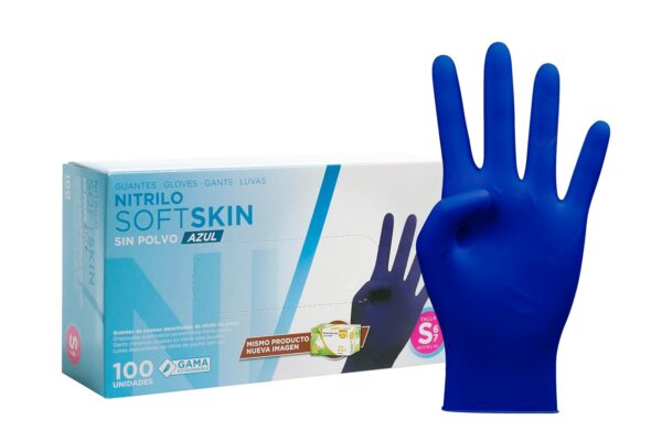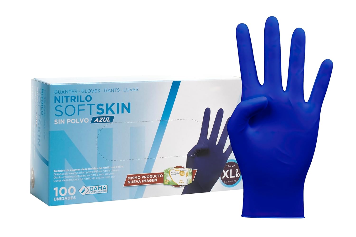 Guantes nitrilo desechables – Color Azul- Colección Softskim Guantes de Látex sin Polvo – Disponible en tallas XS, S, M, L, XL