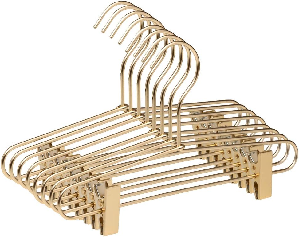 COM-FORT HOUSE Percha de Aluminio con Pinzas para Falda, Color Dorado. Pack de 8 y 14 Und. Perchas de Metal de 32 cm, Inoxidable y Resistentes. 14 Und.